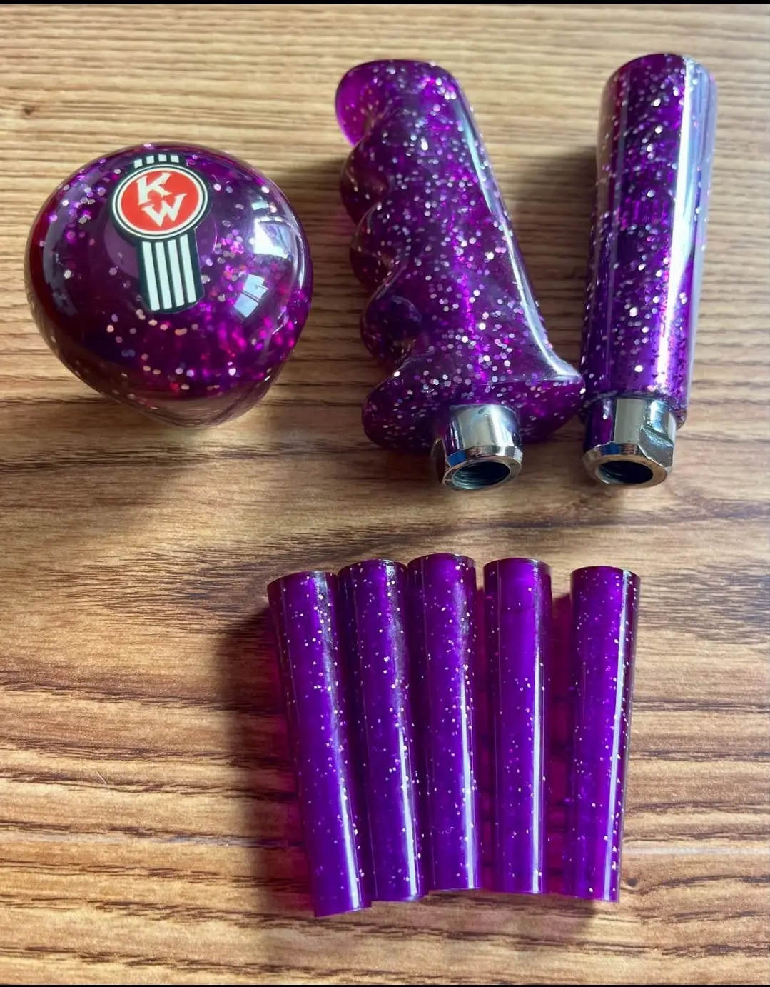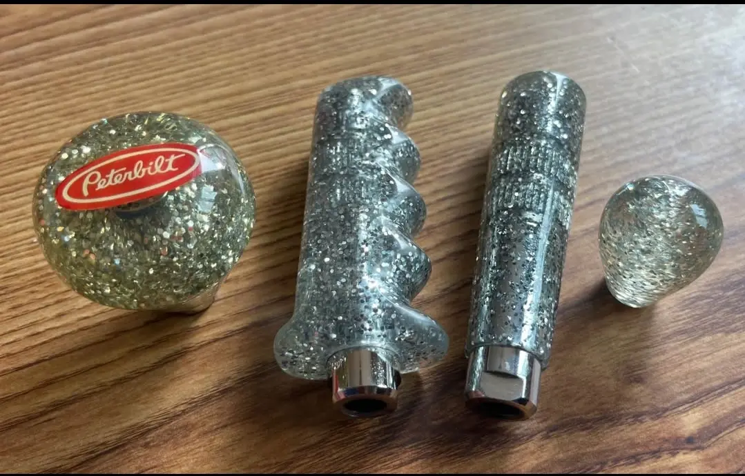 Vintage style glitter shift knobs. Pistol grips and cat handle. Price $150 each plus $10 shipping. Pm me if interested.